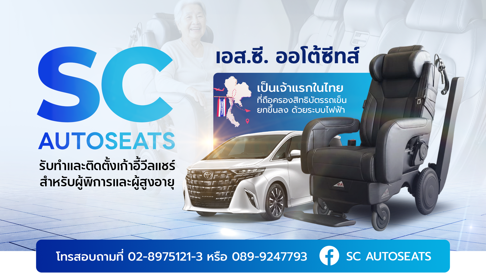 ผู้เชี่ยวชาญด้านระบบเบาะรถตู้และอุปกรณ์อำนวยความสะดวก สำหรับผู้สูงอายุและผู้พิการ หากคุณกำลังมองหาโซลูชันด้านเบาะรถตู้ ระบบวีลแชร์ หรืออุปกรณ์อำนวยความสะดวกภายในรถ ทีมงาน SC Autoseat ยินดีให้คำปรึกษาและแนะนำแนวทางที่เหมาะสมที่สุดสำหรับคุณ